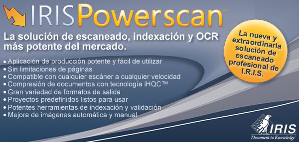 Por último, IRISPowerscan™ se integra totalmente con el resto de productos de Reconocimiento Inteligente de Documentos (IDR) de I.R.I.S.: