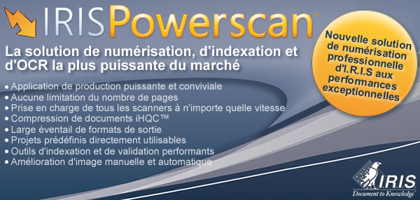 Enfin, IRISPowerscan™ est entièrement intégré avec tous les autres produits IDR (Intelligent Document Recognition) d'I.R.I.S, et notamment :