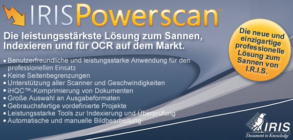 Und nicht zuletzt ist IRISPowerscan vollständig integrierbar in alle anderen I.R.I.S-Produkte im Bereich Intelligent Document Recognition (IDR), wie z. B.: