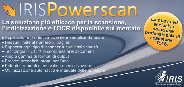 Grazie ad una versione senza limitazioni sul volume e al supporto di un'ampia gamma di scanner di tutte le marche, IRISPowerscan™ è la soluzione più competitiva non solo per i service bureau ma anche per i clienti più importanti ed esigenti.
